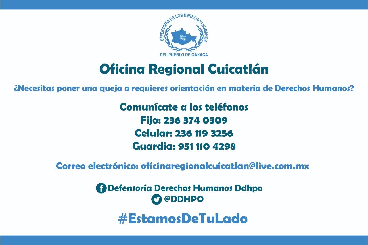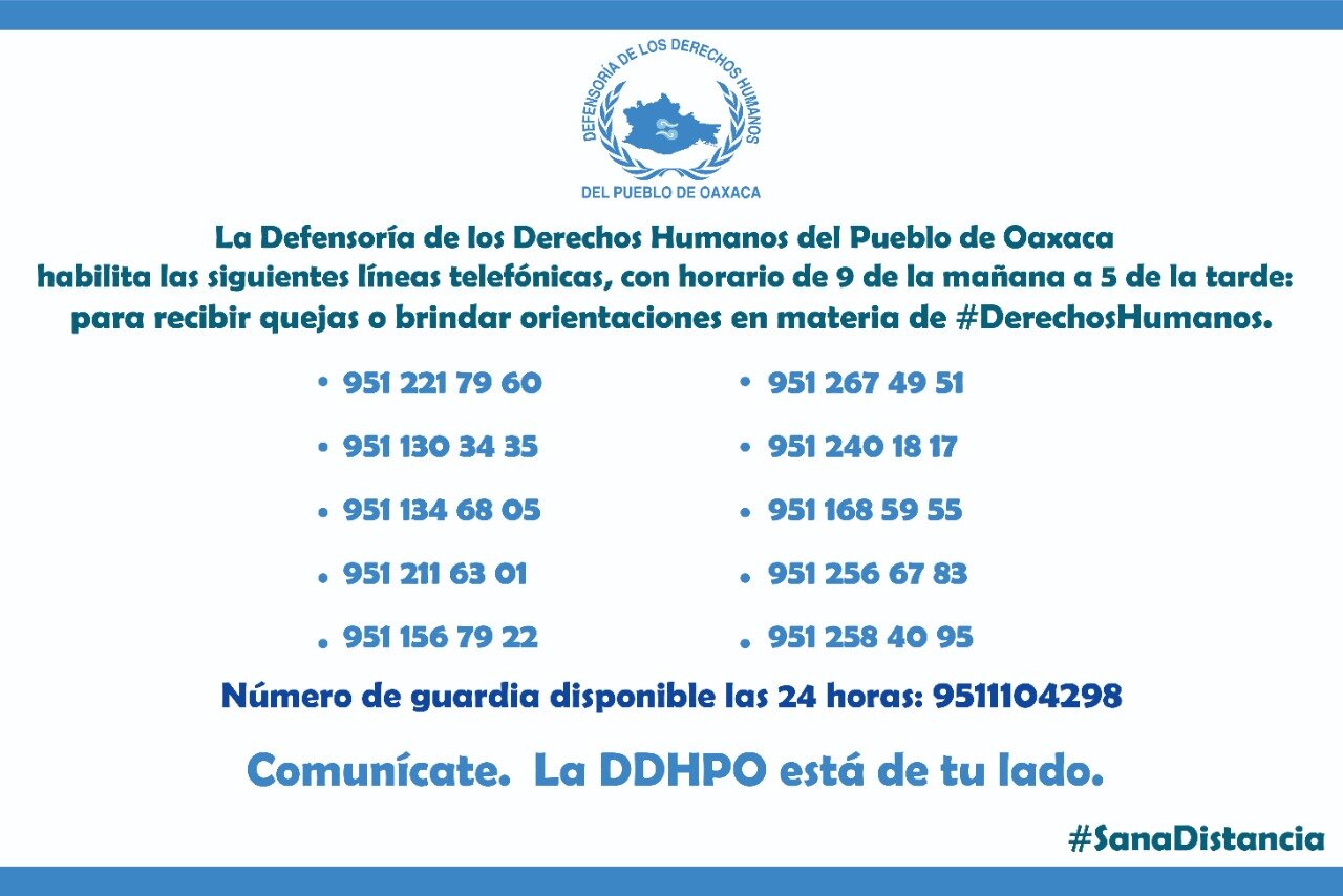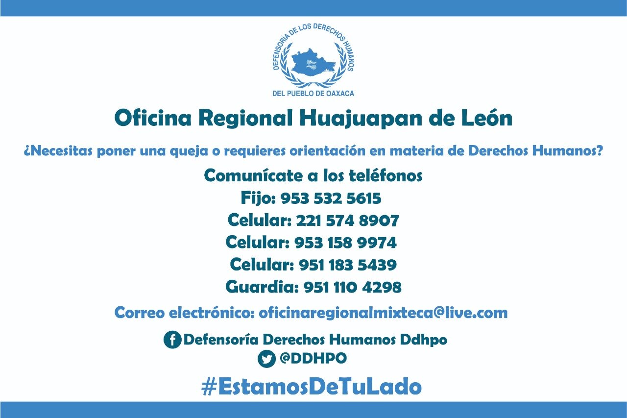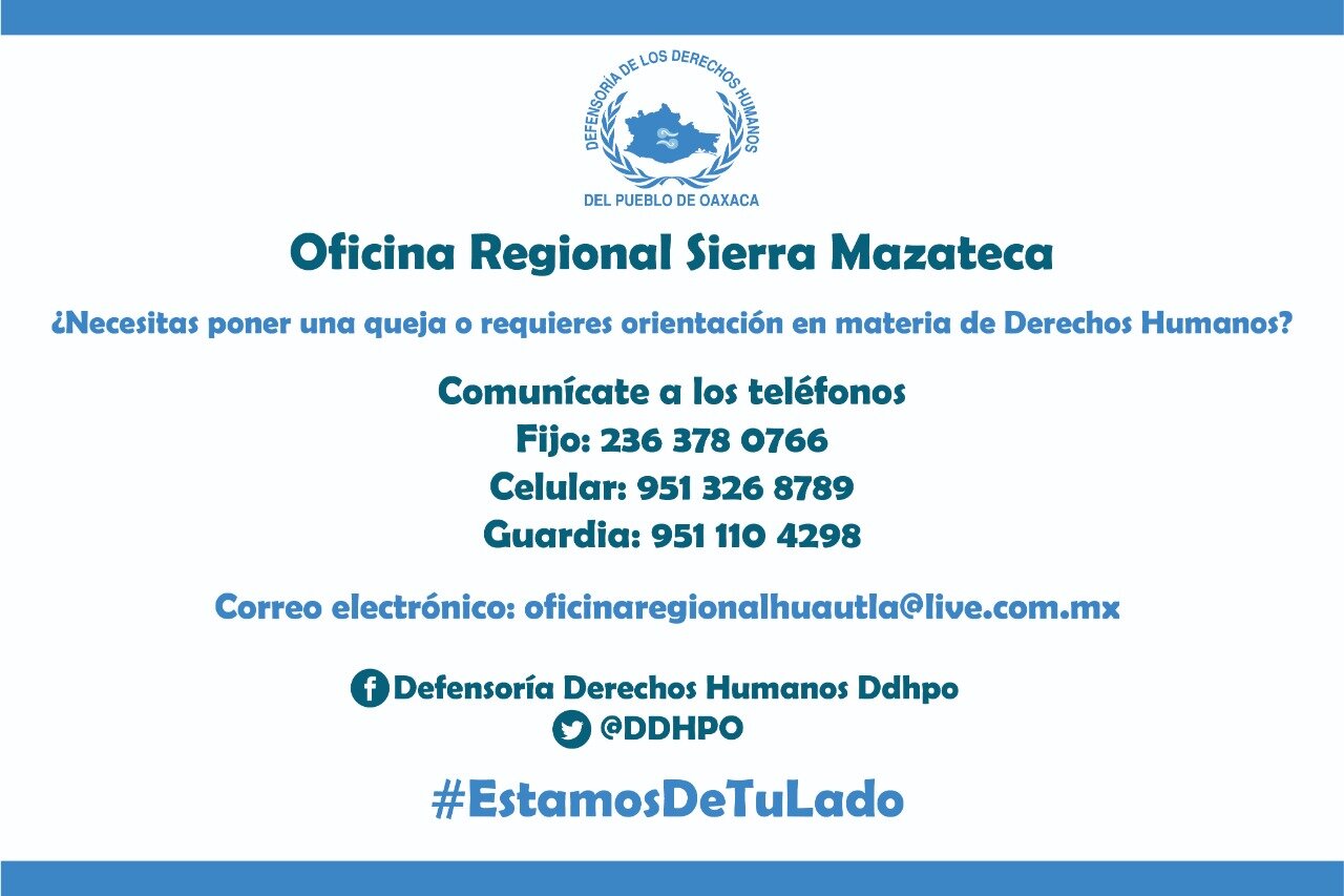 ¿Tiene alguna pregunta? (951) 50-30-215 defensoria@derechoshumanosoaxaca.org |