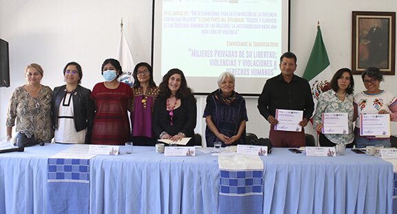 Twittear En el marco del Día Internacional para la Eliminación de la Violencia contra las mujeres, que se conmemora este 25 de Noviembre, la Defensoría de los Derechos Humanos conjuntamente con organizaciones de la sociedad civil y académicas, llevaron a cabo el conversatorio “Mujeres privadas de su libertad; violencias y violaciones a derechos humanos”. El organismo autónomo convocó a la actividad como parte del diplomado “Acceso y ejercicio de los derechos humanos de las mujeres: la justiciabilidad hacia una vida libre de violencia”, que realiza de manera conjunta con la Universidad Autónoma Metropolitana (UAM) Unidad Xochimilco, a través de su Maestría en Estudios de la Mujer y el Centro Profesional Indígena de Asesoría, Defensa y Traducción A. C. (Cepiadet). Durante su participación, la socióloga e investigadora independiente, Concepción Silvia Núñez Miranda indicó que, desde su experiencia en la defensa de las mujeres privadas de su libertad ha podido observar la grave problemática a la que se enfrentan al acceder a la justicia, pues desde su detención y reclusión, son víctimas de violaciones sistemáticas a sus derechos humanos. Por su parte, la coordinadora general del Centro de Estudios y Acción por la Justicia A.C., Ángela María Guerrero Alcántara señaló la necesidad de poner en la agenda pública a las mujeres privadas de su libertad, y resaltó que los Centros de Reinserción Social no fueron pensados, ni creados para las mujeres, al ser espacios con condiciones precarias, situación que se traduce en uno de los retos para las autoridades penitenciarias y para el Estado. Por su parte, la jueza de control con licencia del Poder Judicial de Oaxaca, Monivet Shaley López, recalcó que, en muchos de los casos, las mujeres privadas de su libertad son utilizadas para cometer delitos, situación que conlleva a realizar un estudio sobre las razones que originaron que las mujeres cometieran el delito, pues en el peregrinar de las mujeres, especialmente las mujeres indígenas, se ha observado la violación a su debido proceso y la falta de intérpretes. Durante su participación, el defensor especializado en Centros de Reinserción de la DDHPO, Pedro Sandoval Martínez, enfatizó la necesidad de contar con una justicia con perspectiva de género y protocolos en la materia, además de condiciones adecuadas de internamiento, alimentación, acceso al agua, entre otros derechos que deben ser garantizados. Apuntó que entre las quejas más recurrentes de las mujeres privadas de su libertad que solicitan la intervención de la Defensoría, se encuentran la falta de trabajo y los estigmas por haber permanecido en un Centro de Reinserción. En su oportunidad, las integrantes de Veredas Psicosociales A.C., Luz Angélica Hernández Amador y Daniela M. García coincidieron que es importante la suma del trabajo interinstitucional en la lucha de las mujeres por el reconocimiento de sus derechos humanos. Y destacaron que desde la organización que representan, realizan el acompañamiento psicológico a las mujeres privadas de su libertad, a fin de que desde su necesidad construyan lo que es la justicia para ellas. Boletines recientes